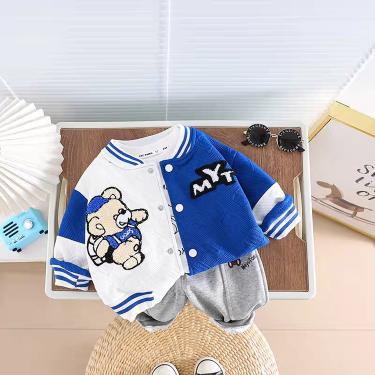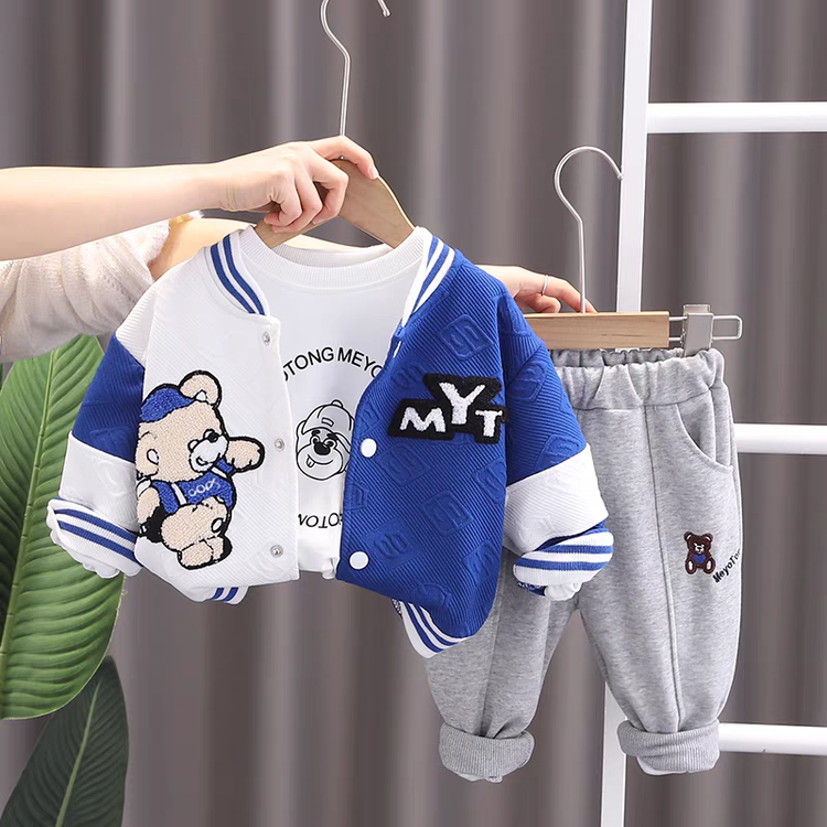 ست اسپرت سه تکه بچگانه طرح خرسی مدل «Blue College Bear»